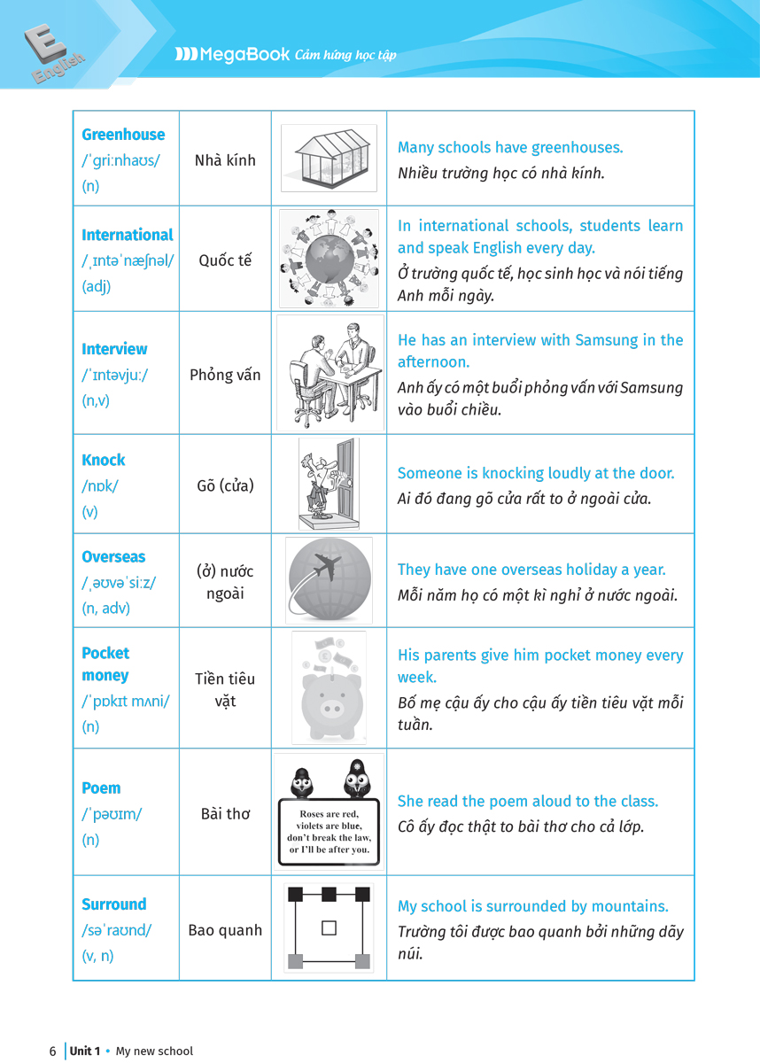 - Nội dung được thiết kế sinh động, logic dễ nhớ Cuốn sách giúp bạn học nhanh chóng ghi nhớ từ vựng có trong mỗi bài học thông qua hình ảnh minh họa và ví dụ cụ thể Hệ thống kiến thức ngữ pháp có trong bài học giúp các em nắm chắc cấu trúc ngữ pháp, sử dụng ngữ pháp dễ dàng với ví dụ chi tiết