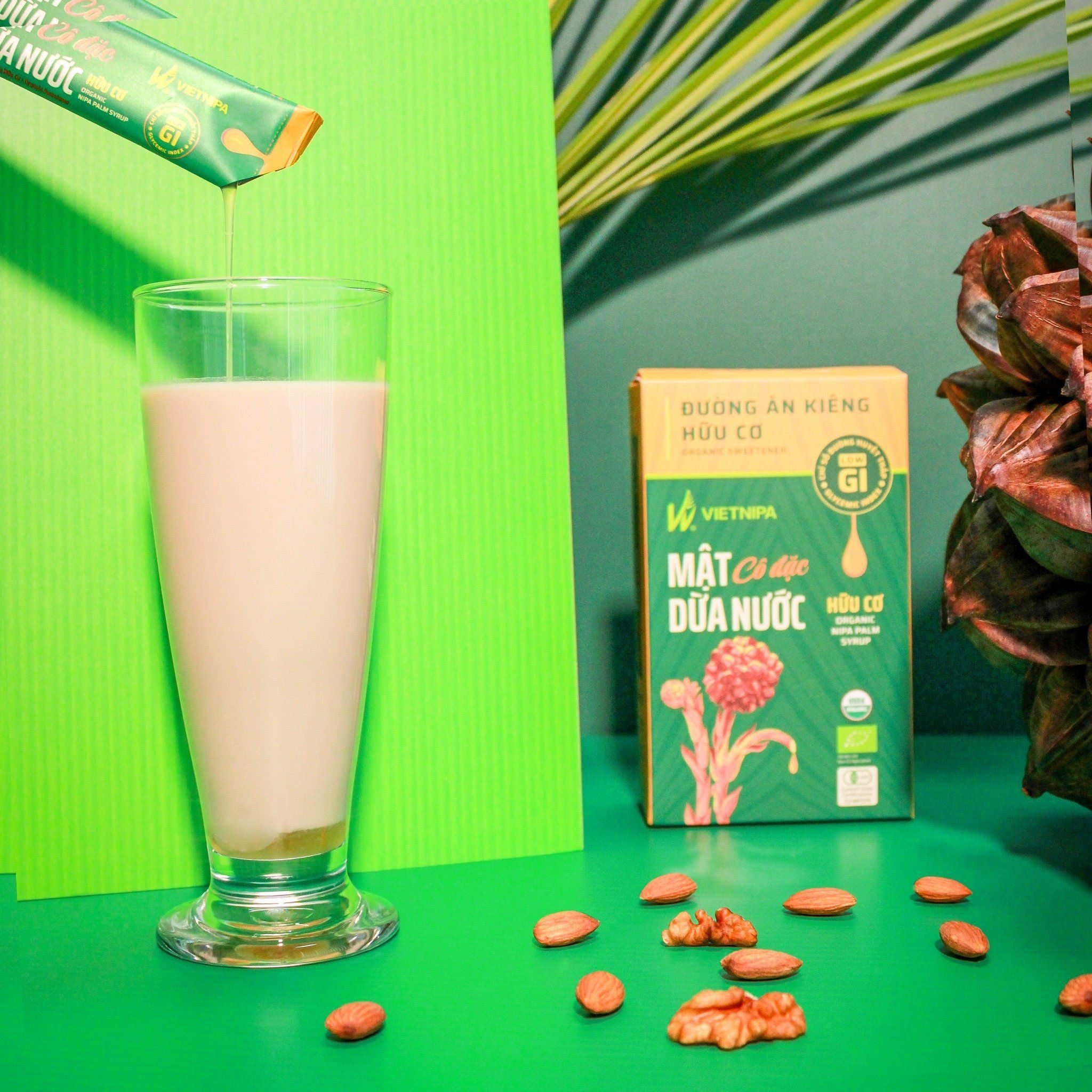 Mật Dừa Nước Cô đặc là sản phẩm dinh dưỡng hoàn toàn tự nhiên. Những giọt tinh chất trích ra từ Cuống Dừa Nước được cô đặc với công nghệ hiện đại, giữ lại hàm lượng cao thành phần dinh dưỡng, tạo cho sản phẩm hương vị đậm đà thơm ngon. Mật Dừa Nước Cô đặc được sử dụng như một giải pháp làm ngọt tự nhiên và có lợi cho sức khỏe. Chỉ số đường huyết của sản phẩm thấp (GI=16,69) nên phù hợp với mọi đối tượng, đặc biệt là người tiểu đường type 2, ăn chay, ăn kiêng.