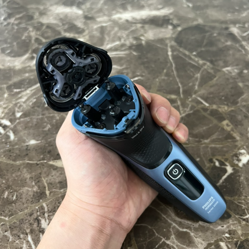 - Mở một chạm để dễ dàng vệ sinh: Làm sạch máy cạo râu một cách dễ dàng. Chỉ với một nút bấm, lật mở đầu máy cạo râu và rửa sạch bằng nước.