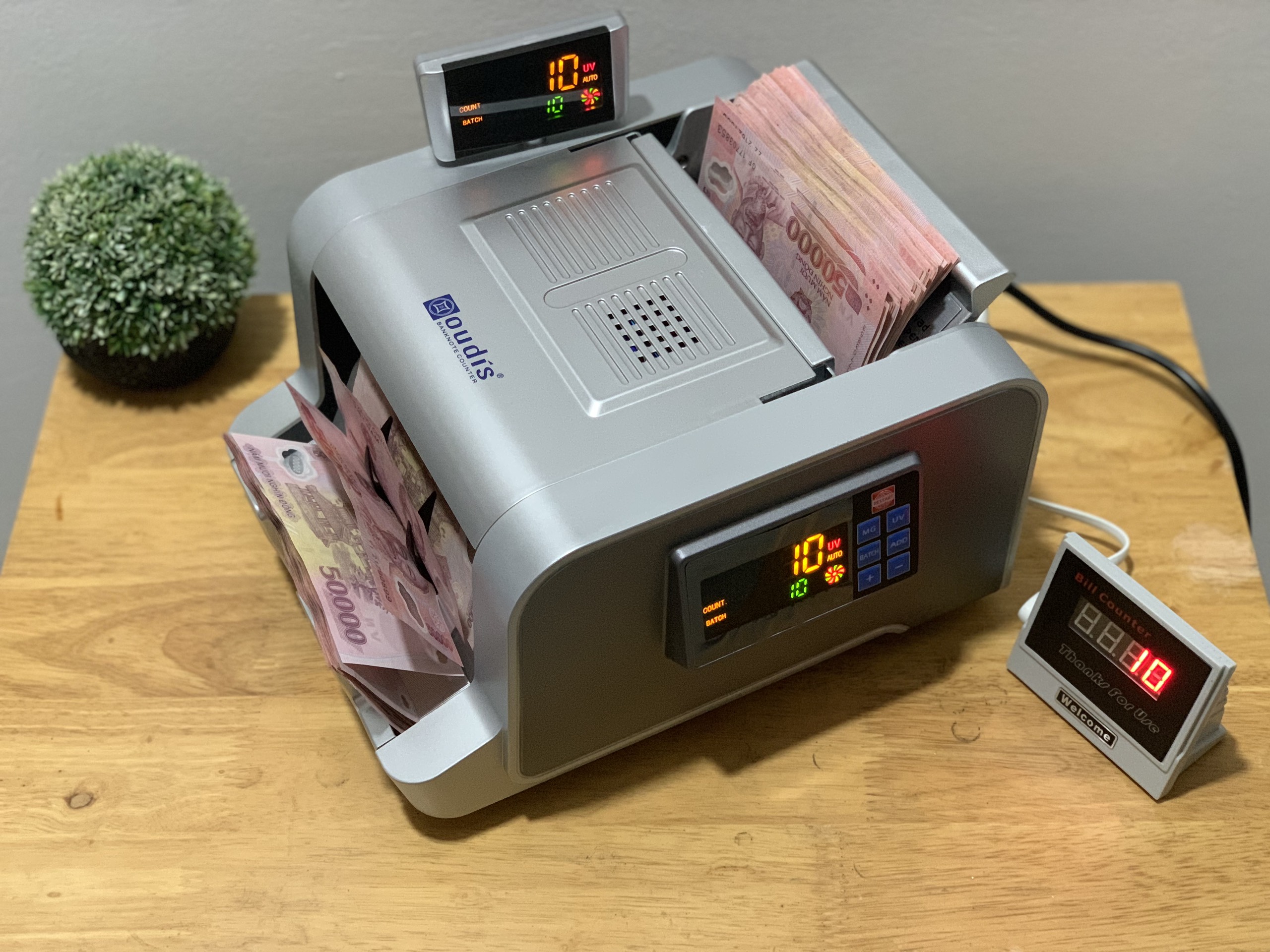 - Máy Đếm Tiền Phát Hiện Tiền Giá Oudis 9699 đếm tiền polymer hiển thị mệnh đang đếm và kiểm tra tiền giả , siêu giả phát hiện lẫn mệnh giá. Đếm tiền polymer thông