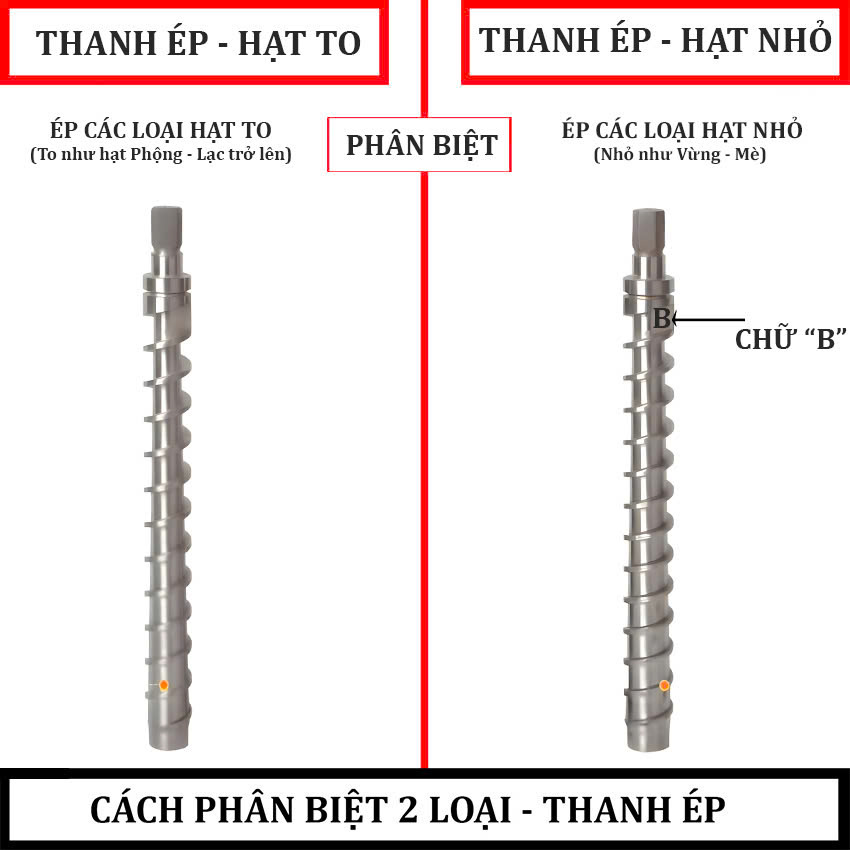 - Nguyên liệu ép không cần phải rang qua - Trục ép thiết kế dài hơn, tháo lắp nhanh chóng, trục ép bằng Inox 420 dạng xoắn tháp ép nhanh hơn, kiệt dầu hơn Hướng dẫn sử dụng