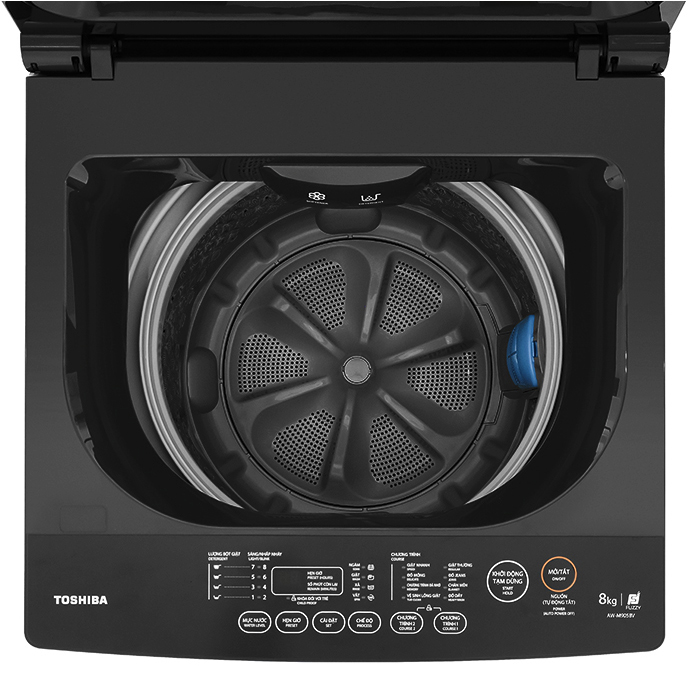Máy giặt Toshiba 8kg AW-M905BV(MK) thuộc kiểu máy giặt cửa trên – lồng đứng sang trọng, giặt sạch quần áo và giảm thiểu hư tổn sợi vải với lồng giặt ngôi sao pha lê, tự động kiểm tra lượng đồ giặt và cân chỉnh mức nước nhờ công nghệ suy luận ảo Fuzzy Logic. Tổng quan thiết kế