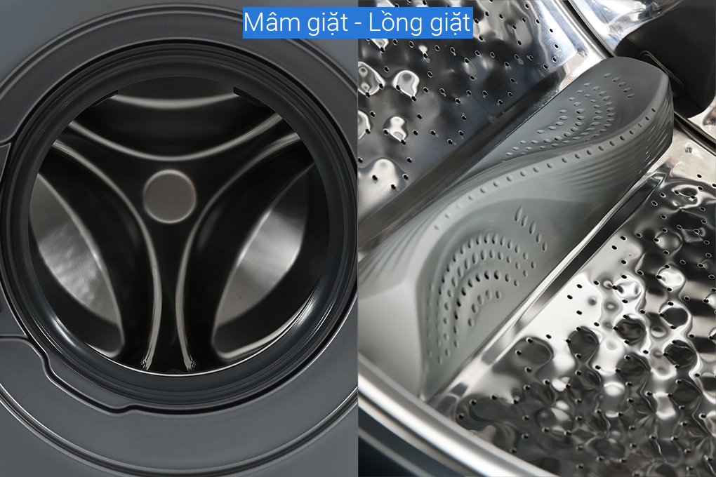 - Lồng giặt thép không gỉ chất lượng cao chống oxy hóa, chống ăn mòn, hạn chế được vi khuẩn, mảng bám trong lồng giặt, giữ bộ phận này của máy giặt bền tốt hơn. Khối lượng và chương trình giặt