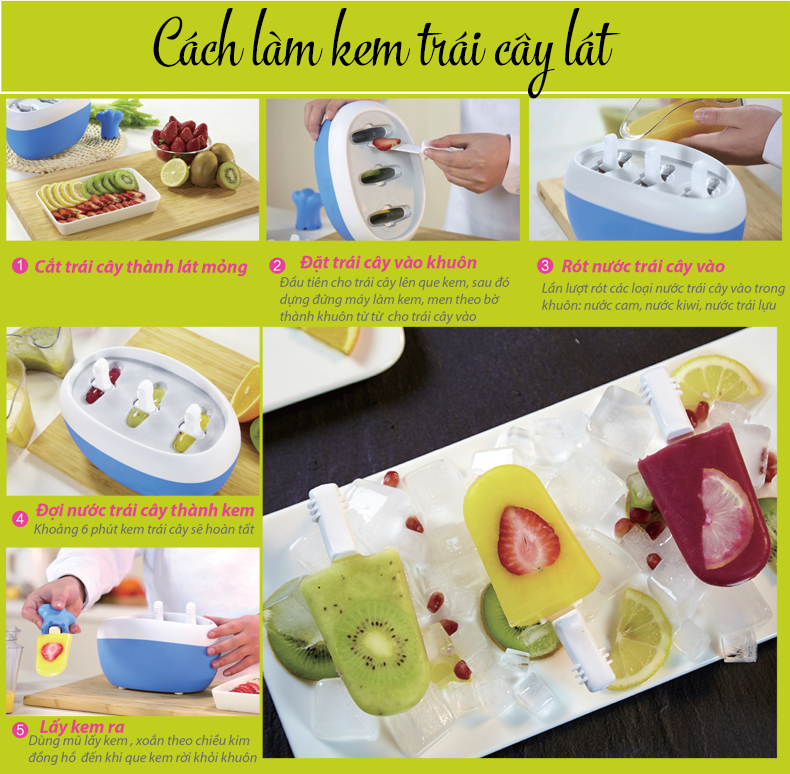 Với các thao tác đơn giản chỉ sau 4 phút bạn đã có ngay những que kém không chỉ đẹp mắt mà còn chứa đựng hương vị và loại trái cây mà bạn yêu thích.