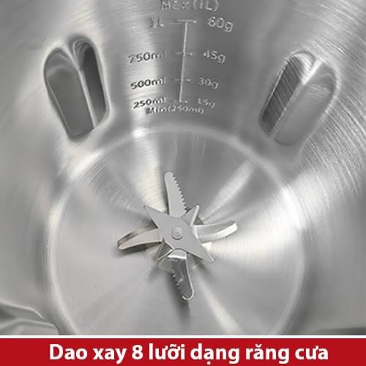 - Lưỡi dao 8 lưỡi xay nhuyễn mọi loại nguyên liệu giúp thành phẩm sữa thơm ngon nhuyễn mịn