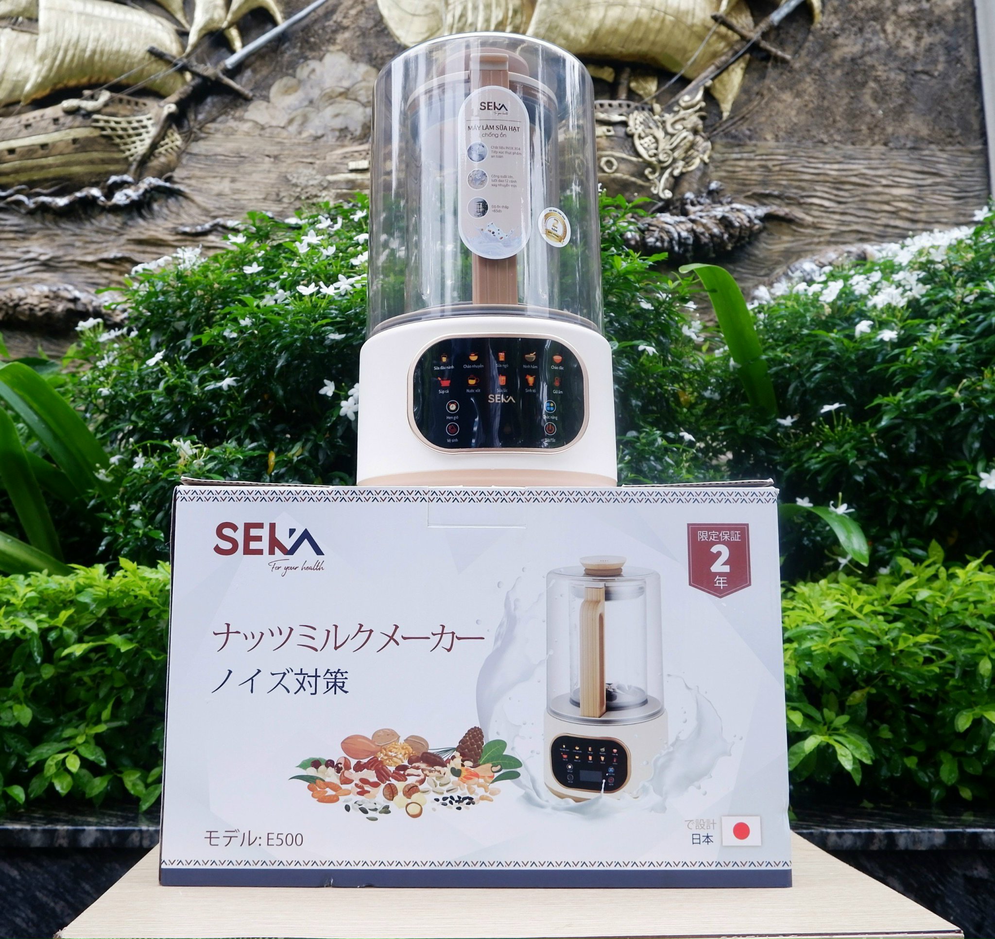 Máy làm sữa hạt SEKA E500 chống ồn dung tích 1.5 lít lưỡi dao 12 cánh bảo hành 2 năm Máy làm sữa hạt SEKA E500 được sản xuất bằng công nghệ hiện đại của Nhật, sử dụng các vật liệu an toàn cho sức khỏe. Thiết kế tinh tế, màu sắc trang nhã, được tích hợp lồng chống ồn/cách âm hiệu quả, máy làm sữa hạt SEKA chinh phục khách hàng không chỉ bởi sự tiện dụng mà còn là điểm nhấn cho không gian bếp trong gia đình hiện đại. Đặc điểm nổi bật của máy làm sữa hạt đa năng SEKA E500: