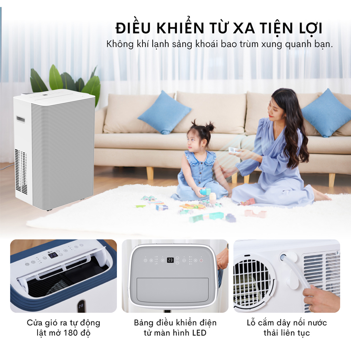· Máy lạnh di động 4 trong 1 (làm lạnh, hút ẩm, quạt, lọc không khí )