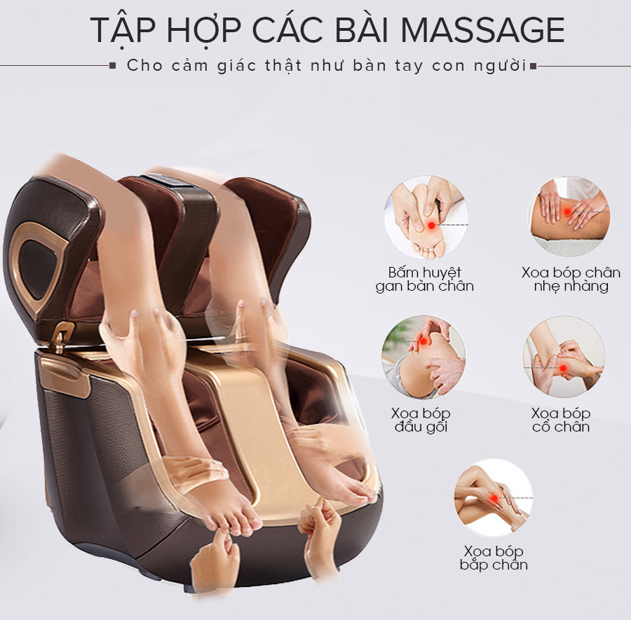 Công nghệ bóp nhả liên tục của túi khí sẽ kích thích vào các cơ, mạch máu, xương khớp, huyệt đạo…đem đến cảm giác thích thú cho người dùng. Những túi khí ôm trọn đôi chân không gây khó chịu hoặc bí bách.