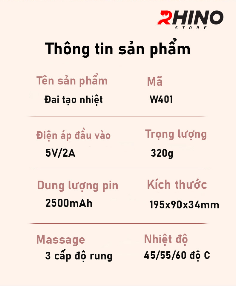 Máy massage làm ấm bụng, giảm đau bụng đau lưng cho bạn gái đến kỳ Rhino W401 Đai đeo chườm nóng giảm đau bụng kinh nguyệt