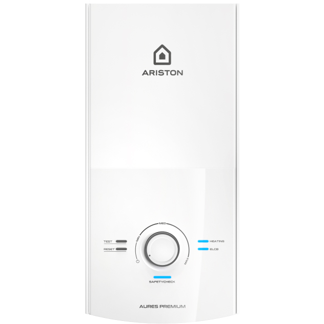 - Máy nước nóng trực tiếp Ariston 4500W AURES PREMIUM 4.5 với cơ chế làm nóng trực tiếp thích hợp cho các khu vực miền Nam (hoặc các khu vực trên 20°C).