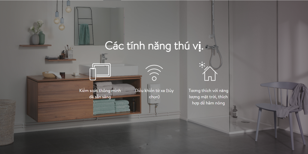 Bình nước nóng trực tiếp duy nhất trên thị trường lắp trong tủ bếp, dưới kệ bếp rất gọn, không nhỏ nước vanTrang bị chống giật RCD được chứng nhận bởi TUV Rheinland và CQC,
