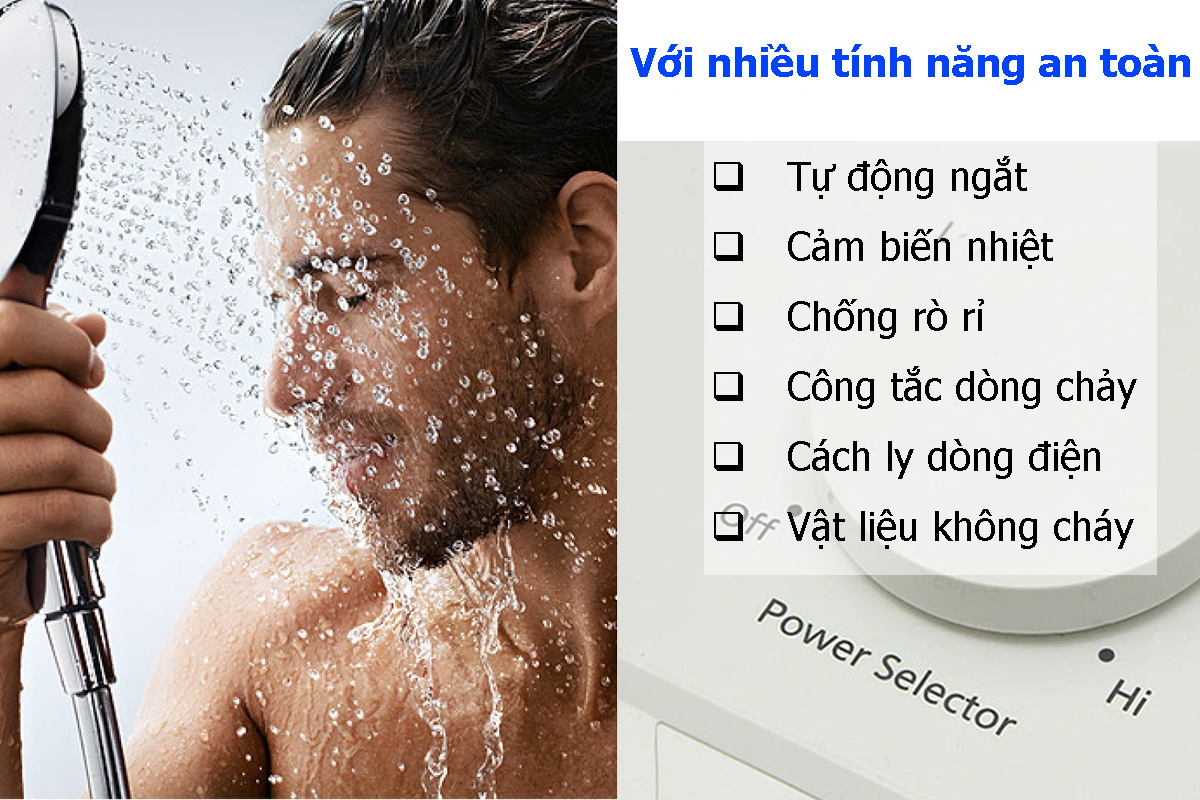 - ĐỐI VỚI SẢN PHẨM MÁY LẠNH, MÁY TẮM NÓNG - GIÁ BÁN CHỈ LÀ GIÁ MÁY, CHƯA BAO GỒM CÔNG LẮP ĐẶT & VẬT TƯ. ️QUÝ KHÁCH HÀNG CẦN TƯ VẤN & HỖ TRỢ NHANH CÓ THỂ LH SHOP NHÉ. Sản phẩm đạt tiêu chuẩn tương thích điện từ EMC Sản phẩm được sản xuất theo tiêu chuẩn tương thích điện từ EMC có nghĩa là sự tương thích điện từ của sản phẩm không gây ảnh hưởng và bị ảnh hưởng bởi các sản phẩm điện tử khác. Vì vậy bạn có thể yên tâm khi sử dụng sản phẩm. Bảo vệ cả gia đình với 9 tính năng an toàn Máy Nước Nóng Trực Tiếp Không Bơm Panasonic 4MS1VW được thiết kế thông minh với 9 tính năng an toàn: Tự động ngắt, cảm biến nhiệt, chống rò rỉ, công tắc dòng chảy, cách ly dòng điện, vật liệu không cháy... bạn có thể yên tâm khi sử dụng một sản phẩm điện được gắn vào môi trường ẩm ướt như phòng tắm. Vấn đề an toàn sức khỏe của gia đình bạn sẽ được bảo đảm. Đồng thời máy còn có nút điều chỉnh lưu lượng nước phù hợp, tránh lãng phí nước. Là thiết bị tiện dụng Được hỗ trợ kèm theo nút điều chỉnh nhiệt độ cao - thấp - trung bình, bạn sẽ có được mức độ nóng của nước mà bạn muốn. Điều đó giúp bạn yên tâm hơn khi sử dụng. Máy hoạt động theo cơ chế đun nóng trực tiếp, công suất 4.5kW giúp máy hoạt động mạnh mẽ, đun nóng nhanh mà không hao tốn quá nhiều điện năng. Vòi sen 3 chế độ với tính năng chống khuẩn bằng Ion Ag+ Vòi sen có độ phun mạnh, phun nước đều và ổn định, tính năng Ag+ kháng khuẩn không những giúp làm sạch bụi bẩn trên cơ thể mà còn giúp bạn xua tan mệt mỏi và thư giãn thoải mái sau những giờ học tập, làm việc căng thẳng.