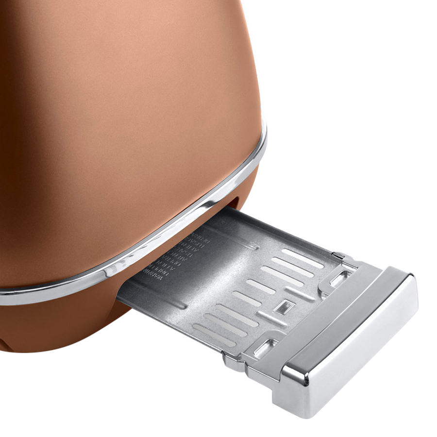 Máy Nướng Bánh Mì Distinta Delonghi CTI 2103.CP có thiết kế hiện đại, kiểu dáng đẹp mắt với nhiều cải tiến mới và được làm bằng chất liệu kim loại mạ crom có màu sắc hài hòa sáng bóng, góp phần tô điểm cho không gian bếp nhà bạn thêm phần sang trọng và tiện nghi.