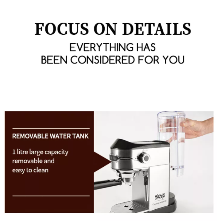 Máy pha cà phê Espresso DSP KA3065 Áp lục bơm 15bar - Hàng Chính Hãng Thiết kế nhỏ gọn, hiện đại