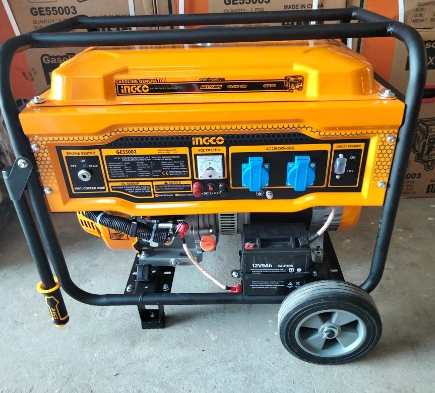 Model này được tích hợp nhiều công nghệ mới của INGCO nên đỡ tốn nhiên liệu và thân thiện với môi trường. Máy phát điện INGCO GE55003 dùng nhiên liệu xăng có công suất tối đa là 5.5KVA, đây là dòng sản phẩm mới được sản xuất bởi dây chuyền công nghệ hiện đại hàng đầu của nhà máy INGCO Trung Quốc, được kiểm định chất lượng nghiêm ngặc trước khi đến tay người tiêu dùng. Sản phẩm hoạt động bằng xăng (thùng đựng xăng dung tích 25 lít), có công suất mạnh 5.5kVA phát điện tốt trong gia đình, xưởng chế tạo, công trường làm việc, trường học, bệnh việ máy có động cơ 4 thì, OHV và được làm mát bằng quạt gió tránh rơi vào trạng thái quá tải, quá nhiệt.