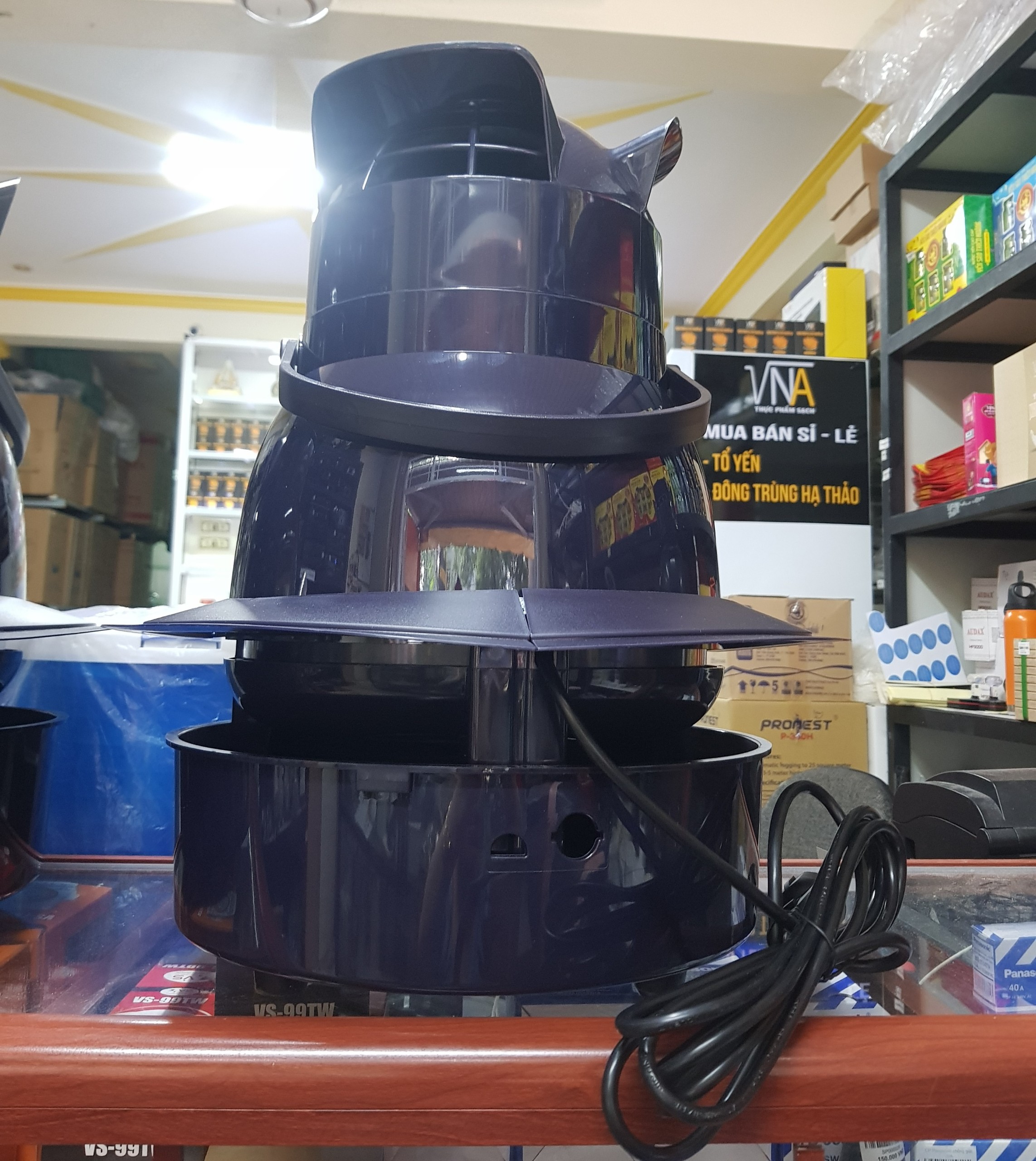 Thông số Nặng: 7,6 Kg Chất liệu: nhựa nguyên chất Phụ kiện kèm theo: 1 nón 3 hướng , 1 nắp lưới, 1 bộ chắn, 1 phao Công dụng: chuyên dụng cho nhà yến diện tích nhỏ, phòng khử trùng, làm ẩm trong nhà, nhà máy dệt, xưởng máy, các xưởng dêt nhà kho, dùng trong các vườn, nông trại chăn nuôi , trông trọt, các lò bánh mì, Ưu điểm: