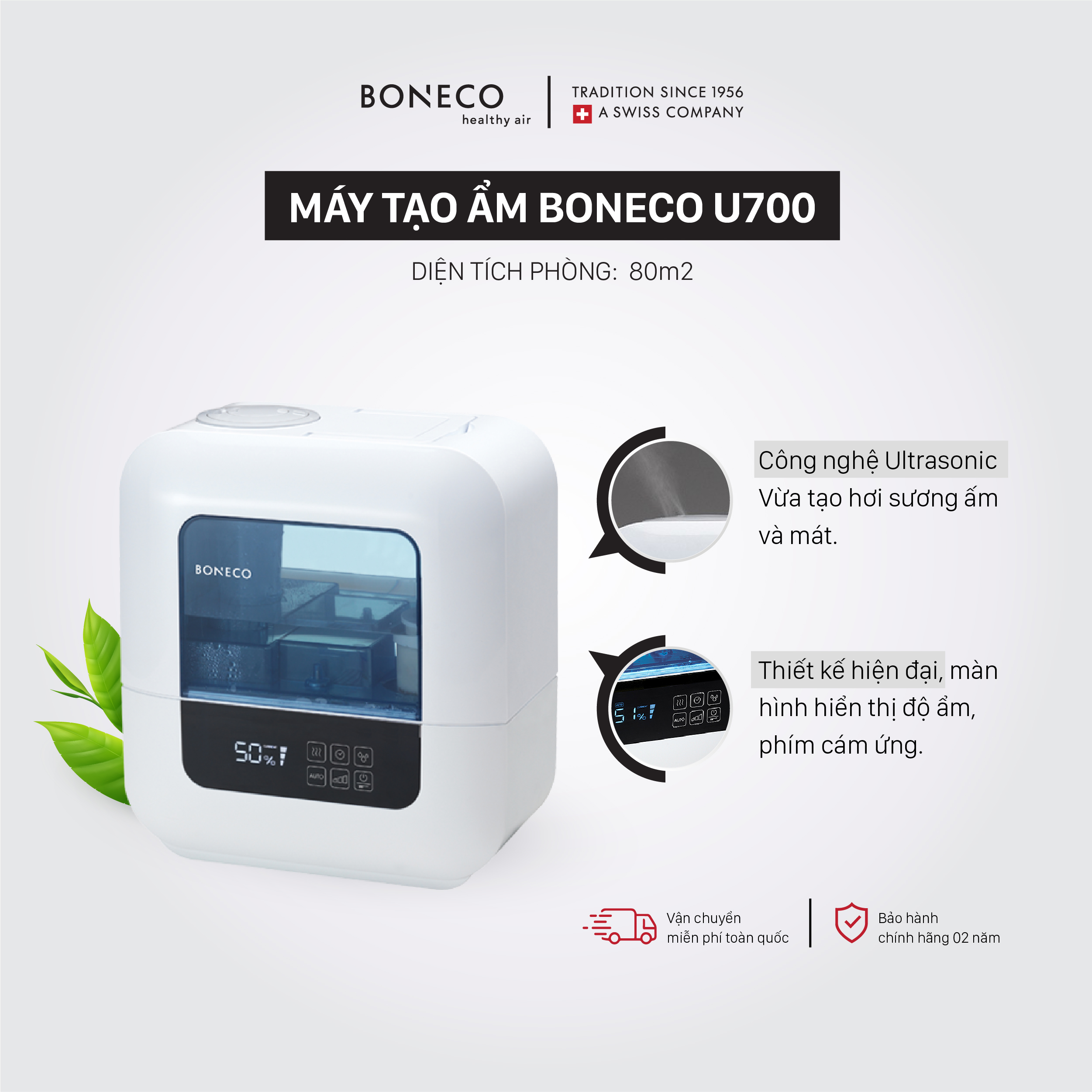 MÁY TẠO ẨM CAO CẤP BONECO U700 1. THÔNG SỐ KỸ THUẬT CÔNG SUẤT TIÊU THỤ 36 W KÍCH THƯỚC 32.5 x 19 x 36 cm TRỌNG LƯỢNG 4.6 kg SẢN LƯỢNG ĐỘ ẨM 600