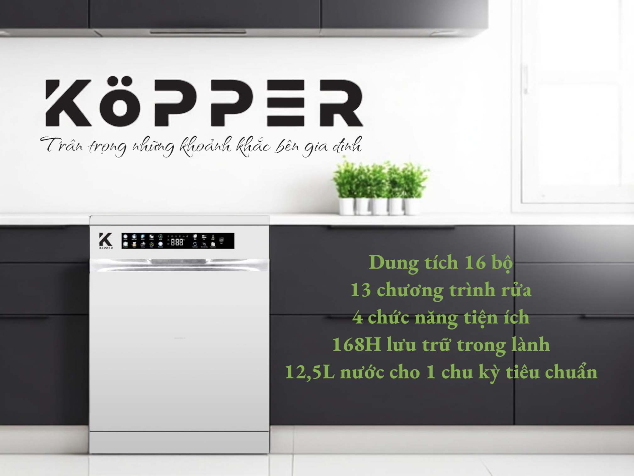 Máy Rửa Bát Kopper KP16SERIE8 SmartAI - Giải Pháp Rửa Bát Thông Minh Cho Gia Đình Hiện Đại Tại Sao Nên Chọn Máy Rửa Bát Kopper KP16SERIE8 SmartAI? Bạn đang tìm kiếm một chiếc máy