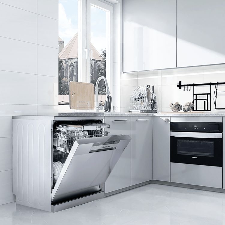Máy rửa bát lắp đặt độc lập hoặc âm tủ Đặc tính sàn phẩm Dung tích 15 bộ bát đĩa Âu, Hệ thống điều khiển cảm ứng toàn diện 2 khay chứa cơ động +