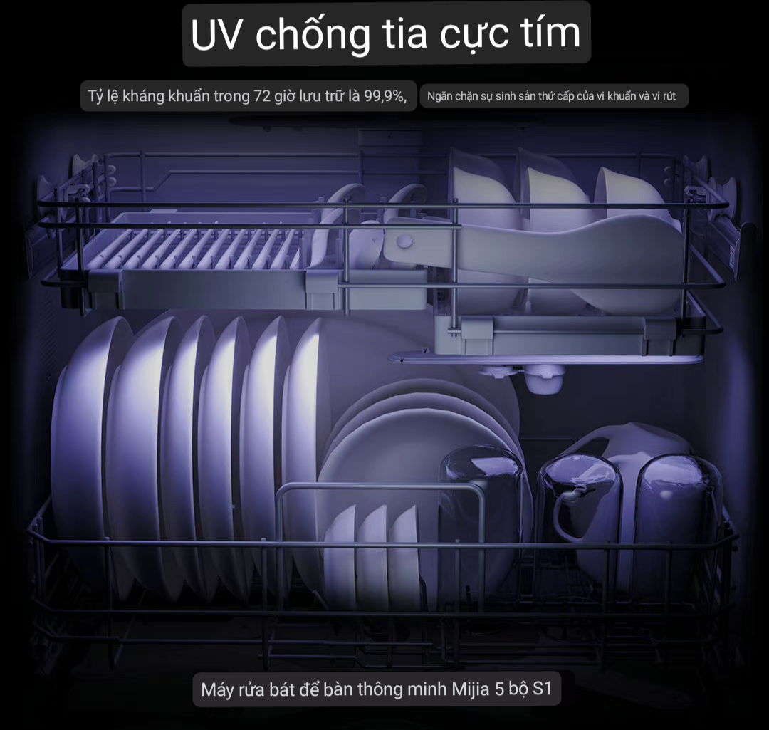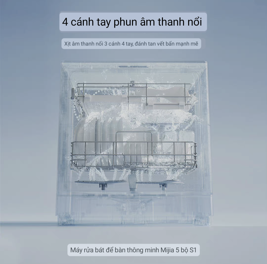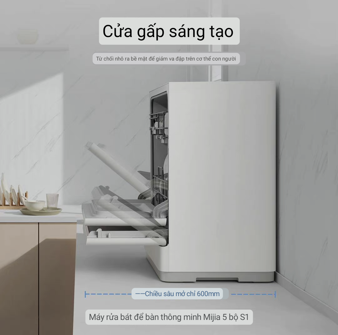 Máy rửa bát để bàn thông minh Mijia S1 có chiều sâu thân máy chỉ là 350mm và chiều rộng thân máy là 550mm, chiếm khoảng 0,19 mét vuông mặt bàn; nó có thể rửa 5 bộ đồ ăn tiêu chuẩn cùng một lúc, tổng cộng là 39 mảnh của bộ đồ ăn . Máy rửa bát này hỗ trợ rửa ở nhiệt độ cao 75 ° C, với tỷ lệ khử trùng và khử trùng là 99,99% ; sấy tuần hoàn khí nóng PTC với tốc độ sấy nhanh; thông gió và sấy khô tuần hoàn chủ động, tỷ lệ diệt khuẩn bằng tia cực tím UV đạt 99,9%; hỗ trợ phát hiện chất lượng nước quang học, với thuật toán thông minh AI, 10 giây để xác định mức độ bẩn, chương trình kết hợp tự động; công suất lớn, hiệu suất mạnh, tiết kiệm nước hơn so với rửa tay; tiêu thụ nước ít hơn 85% so với rửa tay và chỉ 0,53 kW điện tiêu thụ cho một lần rửa.