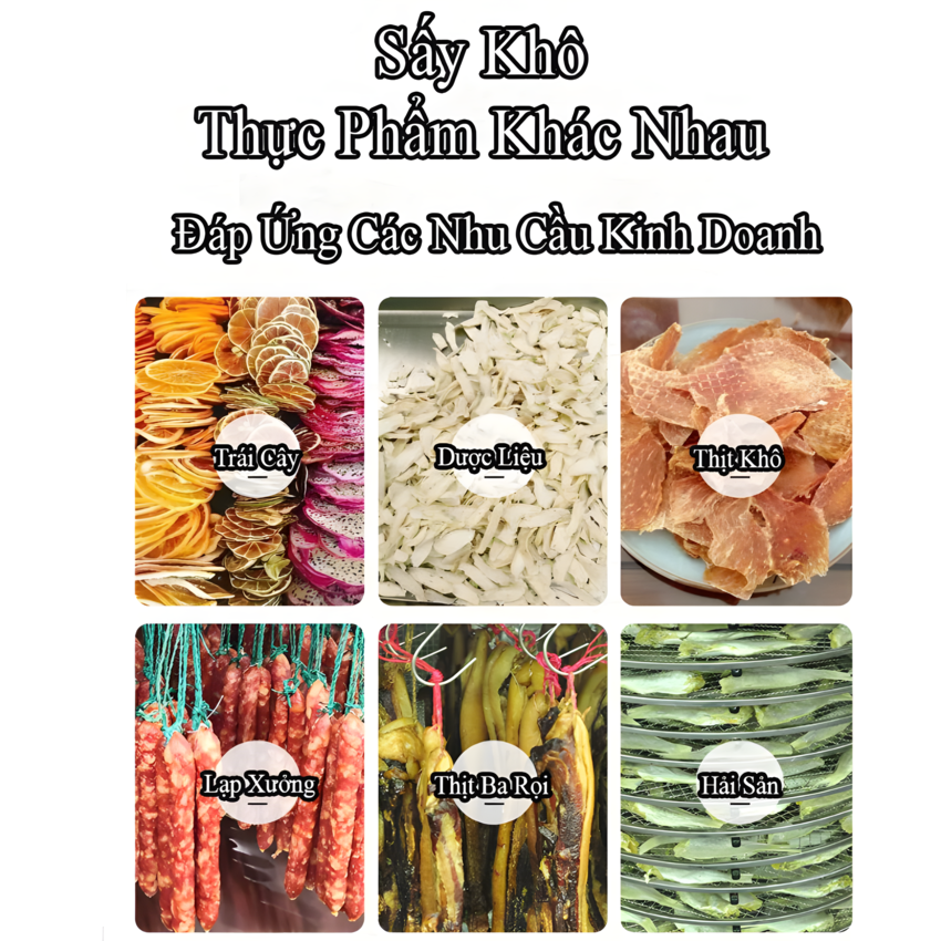 Còn gì tốt hơn khi có thể tự làm cho gia đình được món mứt tết, hoa quả khô ngay tại gia đình mình với Máy sấy hoa thịt quả thực phẩm 5 tầng có