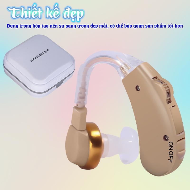 Máy (tay nghe) trợ thính không dây Axon V-189 thiết bị trợ thính cho những ai có vấn đề về thính giác Nếu ông bà cha mẹ của bạn đang mắc chứng bệnh suy giảm thính giác, thì hãy mua ngay cho họ một chiếc máy trợ thính Axon V-189. Đây là loại máy trợ thính đa âm tần, có thể điều chỉnh mức độ khuyếch đại âm thanh theo 4 mức, cho phù hợp với thính lực người bệnh không cần thiết phải đo khám. Với thiết kế nhỏ gọn, máy giúp những người suy giảm thính giác tự tin hơn, hòa nhập cộng đồng tốt hơn. Với chất lượng tốt, giá thành phải chăng, Máy trợ thính - Tay nghe trợ thính Axon V-189 đã trở thành người bạn không thể thiếu với những người bị suy giảm thính giác, lãng tai. Hãy nhanh tay đặt hàng, sản phẩm đang có nhiều ưu đãi hấp dẫn! Đặc điểm nổi bật của máy trợ thính đeo vành tai Axon V-189: