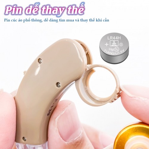 • Trọng lượng nhẹ không làm đau mỏi tai khi đeo thời gian dài Ưu điểm của máy trợ thính không dây Axon F-139: Pin dễ mua và thay thế Một trong những điểm nổi bật của máy trợ thính Axon F-139 là sử dụng pin cúc áo phổ thông, dễ dàng tìm mua và thay thế khi cần. Điều này giúp người dùng tiết kiệm thời gian và chi phí, đồng thời đảm bảo rằng máy trợ thính luôn hoạt động ổn định, không bị gián đoạn. Âm thanh khuếch đại 130dB  Axon F-139 có khả năng khuếch đại âm thanh lên đến 130dB, mang lại âm thanh rõ ràng và chi tiết, phù hợp với những người có thính lực suy giảm nghiêm trọng. Âm thanh được tái tạo chân thật nhờ độ méo tiếng nhỏ ≤5%, giúp người dùng nghe rõ ràng mà không bị nhiễu hay biến dạng âm thanh. Lọc bỏ tạp âm hiệu quả Với khả năng lọc bỏ các tạp âm ở mức ≤30dB, máy trợ thính không dây Axon F-139 giúp loại bỏ các tiếng ồn không mong muốn, mang lại âm thanh trong trẻo và dễ chịu hơn. Điều này đặc biệt quan trọng trong môi trường ồn ào, giúp người dùng nghe rõ ràng hơn mà không bị phân tâm bởi tiếng ồn xung quanh. Điều chỉnh âm lượng 4 mức Máy trợ thính sau tai Axon F-139 được trang bị 4 mức điều chỉnh âm lượng, cho phép người dùng dễ dàng tùy chỉnh theo thính lực của mình. Tính năng này đảm bảo rằng mọi người, từ những người bị lãng tai nhẹ đến nặng, đều có thể tìm được mức âm lượng phù hợp, mang lại trải nghiệm nghe thoải mái. Thiết kế tinh tế và đẹp mắt Với thiết kế đơn giản, dễ sử dụng và tính thẩm mỹ cao, máy trợ thính Axon F-139 được rất nhiều người suy giảm thính lực yêu thích, đặc biệt là người già. 2 núm silicon ôm khít lỗ tai Máy được trang bị 2 núm silicon ôm khít lỗ tai, đảm bảo phù hợp với nhiều người dùng khác nhau, đồng thời mang lại cảm giác thoải mái và an toàn khi đeo. Thoải mái khi đeo lâu dài Một ưu điểm khác của máy trợ thính Axon F-139 là trọng lượng nhẹ, giúp người dùng cảm thấy thoải mái khi đeo trong thời gian dài mà không lo đau mỏi tai. Thiết kế gọn nhẹ này cũng giúp máy dễ dàng mang theo, sử dụng mọi lúc mọi nơi mà không gây bất tiện. Đối tượng nào nên dùng máy trợ thính?