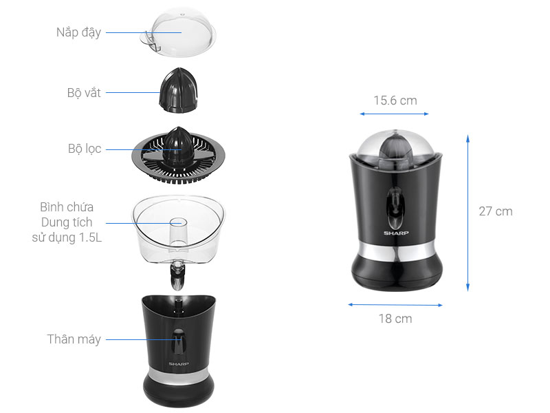Máy vắt cam Sharp EJ J850 BK nhỏ gọn chuyên ép trái cây có múi #anhchinh