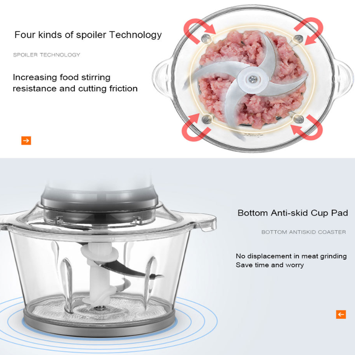 - Chất liệu thép không rỉ có độ bền cao và không độc hại với sức khỏe người dùng. Lưỡi dao sắc bén giúp xay nhuyễn mịn các loại thịt, cối xay thủy tinh dung tích 2L, dễ dàng tháo lắp và lau chùi sau khi sử dụng, đồng thời giúp bạn có thể quan sát thực phẩm bên trong. Xay nhuyễn hiệu quả