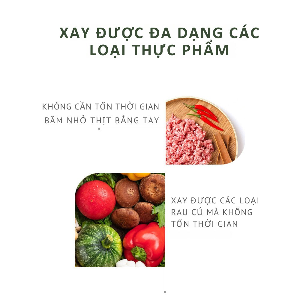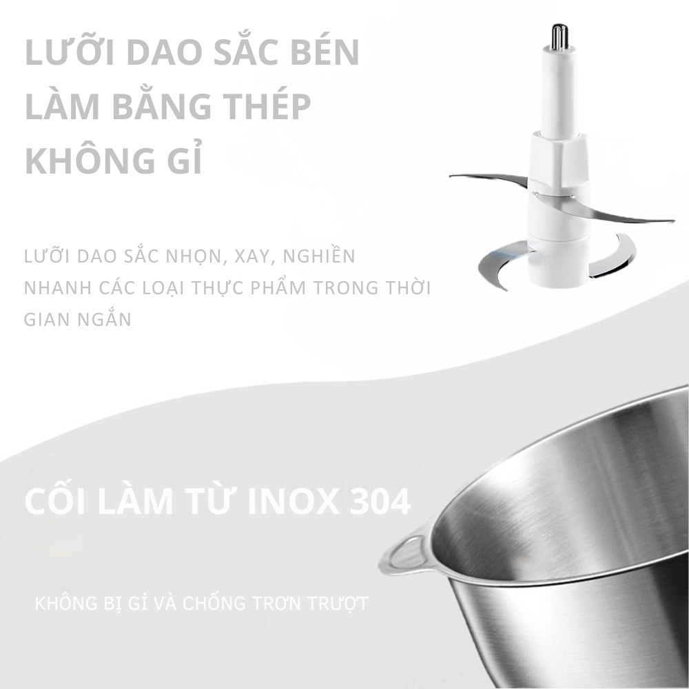 - Chất liệu: Cối INOX, lưỡi dao bằng chất liệu inox không gỉ. - Dung tích: 2L - Kích thước: 210 x 210 x 240mm - Trong lượng gọn nhẹ: 1.2kg - Điện áp: 220V/50Hz