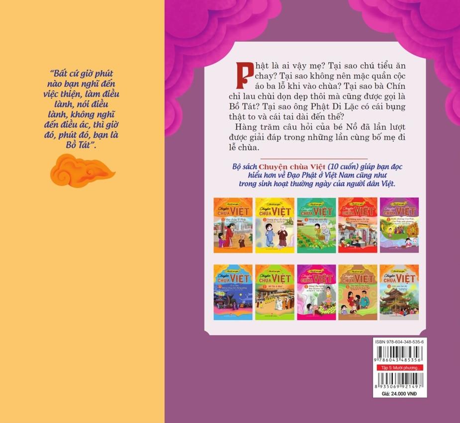 Thông qua câu chuyện bé Nồ cùng gia đình đi lễ chùa, vào chùa gặp Sư trụ trì và chú tiểu Tâm Tĩnh, bộ Mẹ kể con nghe – Chuyện chùa Việt lần lượt hé mở những kiến thức cơ bản về đạo Phật.