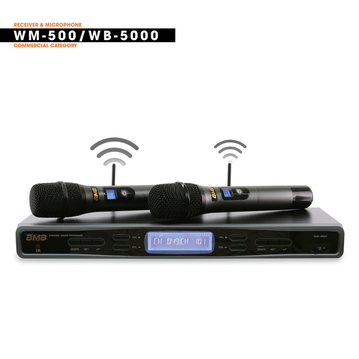 Micro BMB WB-5000 là sản phẩm Micro không dây (Wireless Microphone). Thiết kế hiện đại, sang trọng với giao diện sử dụng thân thiện, màn hình hiển thị TBM LCD độ phân giải cao. WB-5000 có độ nhạy cao và khả năng tái tạo âm thanh chi tiết, trung thực với độ ấm áp cần thiết cho chất giọng người hát ngọt ngào. Sản phẩm được trang bị công nghệ shake connection, tự động kết nối với receiver bằng thao tác lắc micro đơn giản, tiện dụng. Micro sẽ tự động ngắt tiếng khi phát hiện trạng thái rơi tự do từ độ cao 20 cm bởi chức năng intelligent drop mute protection, loại bỏ tiếng ồn chói tai và bảo vệ thiết bị ngoại vi khi micro bị rơi rớt.