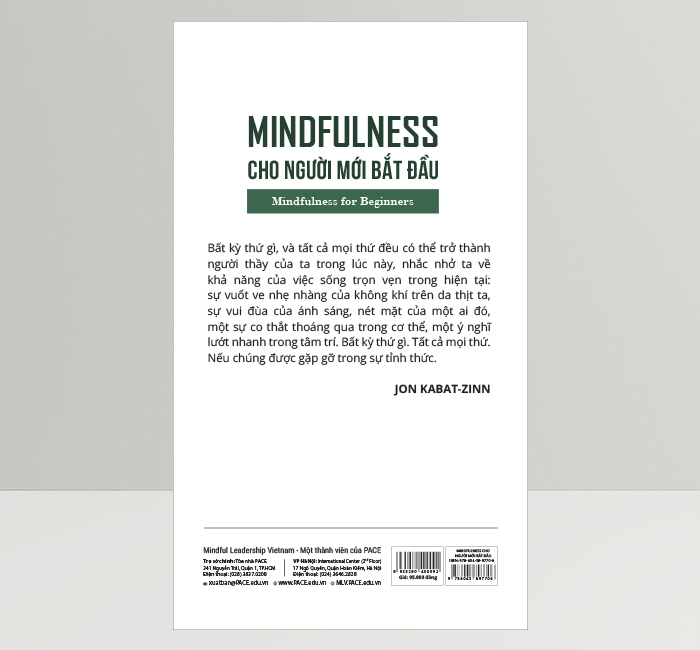 Chúng ta có thể đang khao khát tìm kiếm sự trọn vẹn, trong khi thực tế thì sự trọn vẹn ấy đã hiện hữu ngay lúc này và nằm trọn trong tay ta. Thực hành mindfulness không chỉ đem đến cho ta cảm giác mãn nguyện nhất thời, mà còn chứa đựng sự hợp nhất sâu sắc bao phủ và lan tỏa trong cuộc sống của ta. Trong "Mindfulness cho người mới bắt đầu", bạn được mời gọi học cách phát triển mối quan hệ của mình theo cách bạn suy nghĩ, cảm nhận, yêu thương làm việc và vui chơi từ đó nhận thức và thể hiện một cách thật trọn vẹn con người thật sự của mình.