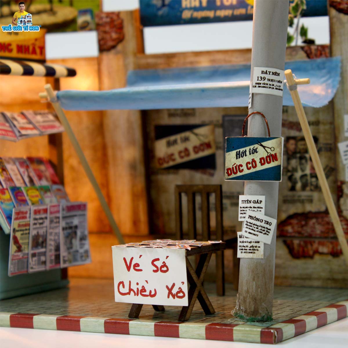 - SẢN PHẨM KHÔNG ÁP DỤNG ĐỔI TÊN BẢNG HIỆU GIÁ SẢN PHẨM CHƯA BAO GỒM THUẾ VAT, KHÁCH CẦN XUẤT VAT XIN VUI LÒNG LIÊN HỆ THẾ GIỚI TÍ HON QUA CHATBOX Mô Hình Thu Nhỏ Sạp Báo Sài Gòn Xưa - AD01 Độc Quyền Báo mới đây, báo mới đây!!! Hình ảnh những sạp bán báo gắn liền với tiệm hớt tóc lề đường có lẽ không xa lạ với những người Sài Gòn hồi xưa, hoặc những bạn trẻ 8x-9x. Những sạp báo khi ấy chính là một thế giới thu nhỏ trong đó với tin tức, biến động, sự đổi thay của thời thế. Bây giờ công nghệ phát triển, chỉ một cú click chuột là con người ta có thể biết được tin tức của cả thế giới ngày hôm đó, những sạp báo giấy dần dần thưa dần. Còn cái tiệm hớt tóc thì buồn thay, đã biến mất khỏi đất Sài Gòn này tự bao giờ… Mô hình lắp ráp thu nhỏ Sạp Báo Sài Gòn mô phỏng tái hiện lại một góc nhỏ SG đang dần bị quên lãng, nhường chỗ lại cho những công trình hiện đại của một SG phát triển và nghĩa tình Mô tả chi tiết hấp dẫn như thật Vé số chiều xổ với phiên bản siêu nhí Video Hướng Dẫn Lắp Ráp Thông số mô hình Đánh giá độ khó Kích thước sản phẩm 24x12x22 CM (Dài x Rộng x Cao) Xuất xứ VIỆT NAM Cân nặng 1.0 Kg Nguyên vật liệu Gỗ, hoa cỏ khô, vải, giấy, kim loại, đèn Led, gốm sứ,nhựa,... Sản phẩm bao gồm Hộp Pin có công tắt, nguyên vật liệu lắp ráp, sách hướng dẫn Tiếng Việt Phụ kiện làm mô hình (Mua riêng): Keo chuyên dụng + Mica che bụi + Bộ dụng cụ Kit...() Shop hỗ trợ lắp ráp luôn nếu bạn có nhu cầu (có phụ phí) Kích thước thật của mô hình Sạp Báo Sài Gòn xưa thu nhỏ AD01 Thành Phẩm Của Khách Hàng Khi phố thị lên đèn Bí Kíp Ráp Nhà Đẹp: Các bạn nên dùng Keo Chuyên Dụng UFO, Keo UFO hỗ trợ rất nhiều khi lắp ghép, đẹp hơn, nhanh khô, dễ tái chế, có thể tháo ra khi bạn ráp không đúng. >>> THẾ GIỚI TÍ HON CÙNG SÁNG TẠO - VUI HANDMADE