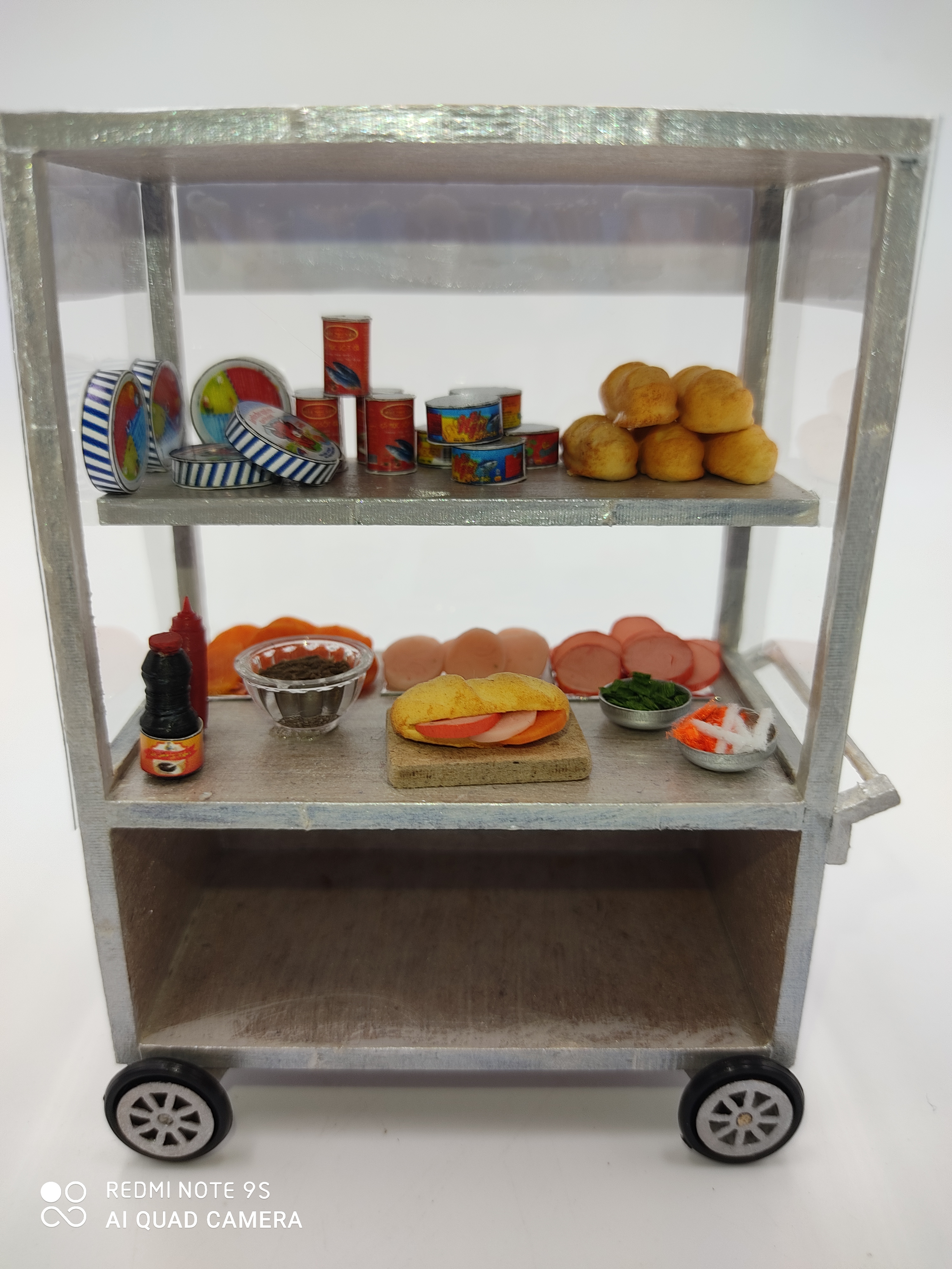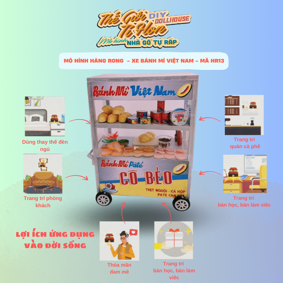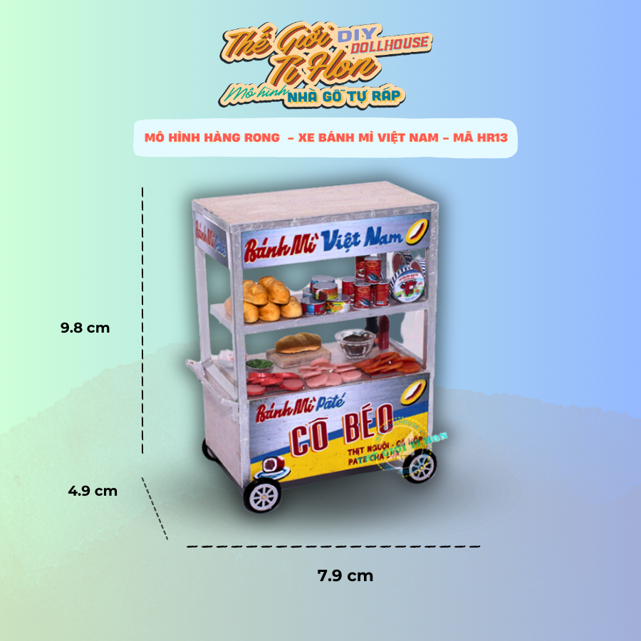 Khách lưu ý: Sản phẩm chưa lắp ráp, chưa bao gồm keo+ dụng cụ+ tượng, không áp dụng đổi tên bảng hiệu Mô Hình Xe Hàng Rong Sài Gòn Thu Nhỏ - Xe Bánh