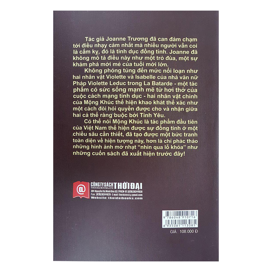 Mộng Khúc Tác giả Joanne Trương đã can đàm chạm tới điều nhạy cảm nhất mà nhiều người vẫn coi là cấm kỵ, đó là tình dục đồng tính. Joanne đã không mô tả điều này như một trò đùa, một sự khám phá mới mẻ của tuổi mới lớn. Không phóng túng đến mức nổl loạn như hai nhân vật Violette và Isabelle của nhà văn nữ Pháp Violette Leduc trong La Batarde