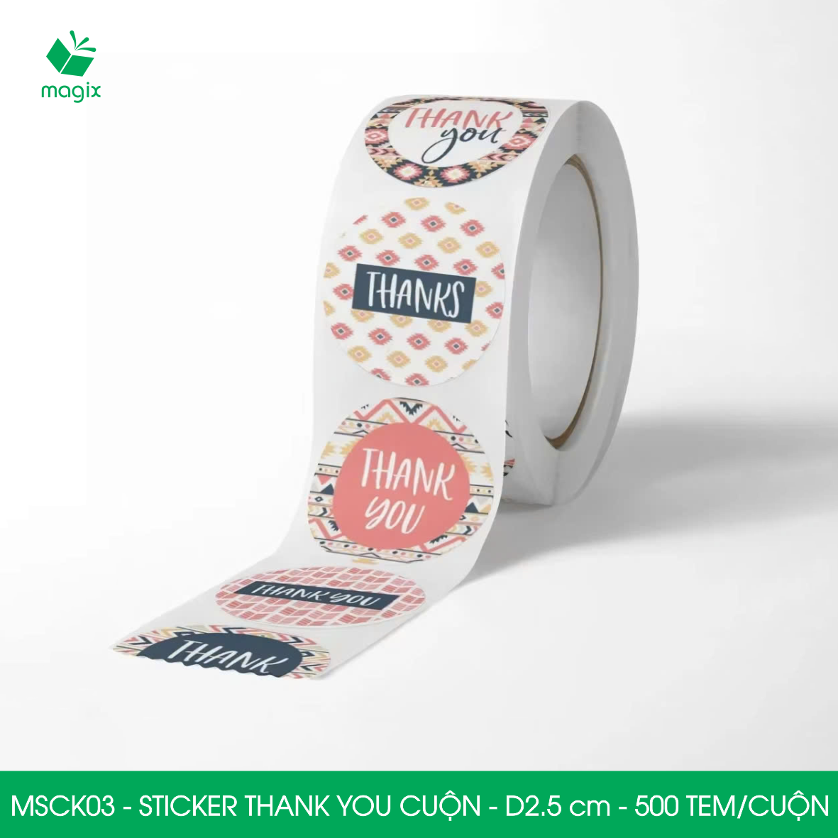 ✨MSCK03 - D2.5 cm - 1 Cuộn 500 sticker thank you tròn, nhãn dán thank you, tem dán cảm ơn