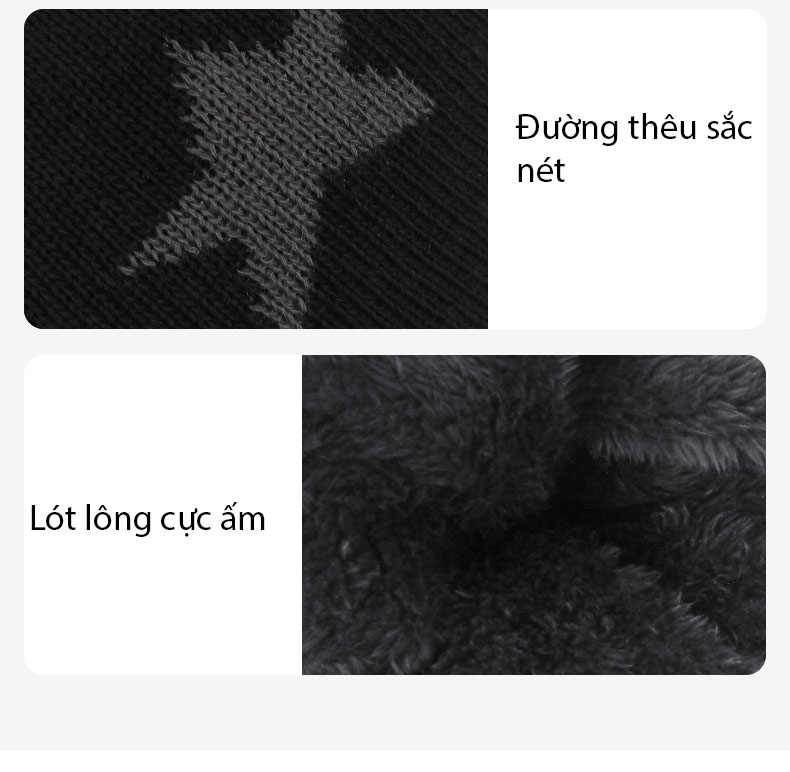 - Chất liệu len nhân tạo cao cấp, đường may tỉ mĩ - Chất liệu: len êm, mềm, co dãn, mặt bên trong lót lông ấm áp - Sử dụng được quanh năm - Phù