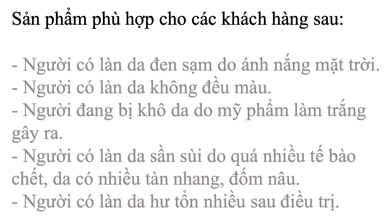 - Sự kết hợp hoàn hảo ba thành phần này trong cùng công thức sẽ tối ưu hóa tác dụng làm trắng, tái tạo sức sống mới và dưỡng ẩm cho làn da