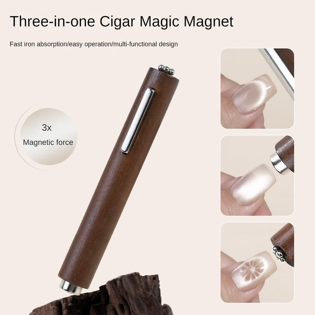✨Nam Châm Siêu Từ Tính 3 Trong 1 Vẽ Móng Mắt Mèo, Nam Châm 3in1 Cán Gỗ Nhiều Đầu Dày Hình Trụ Đẩy Sáng 2 Bên, Đẩy Chéo, Tạo Hình Hoa Cúc Làm Nail