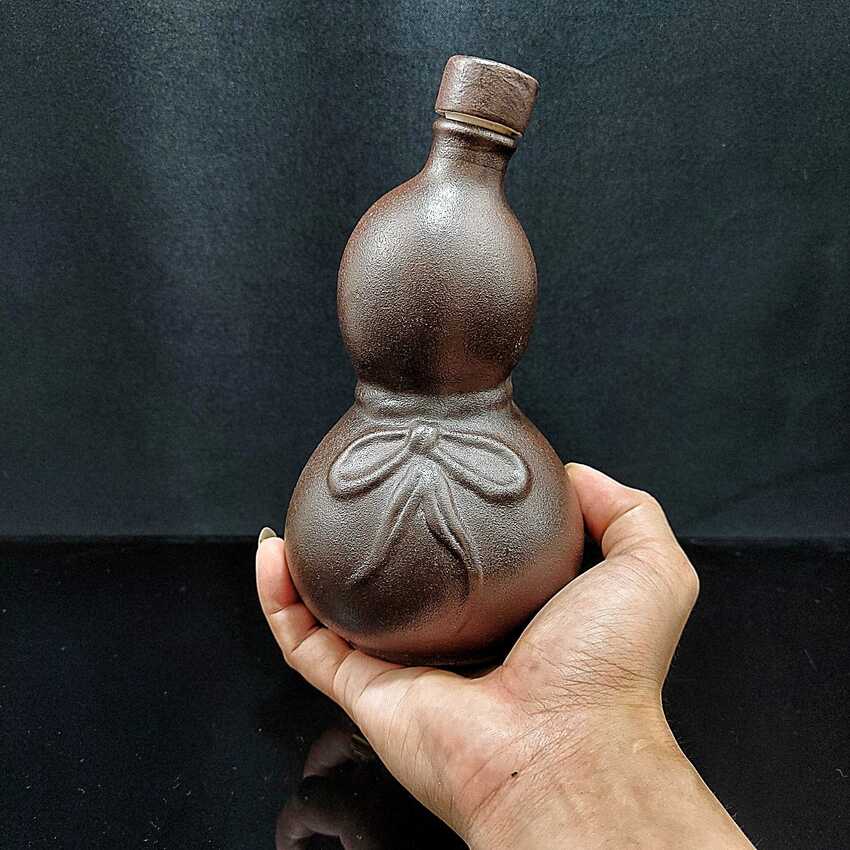 Nậm Rượu Gốm 500ML cao cấp mẫu hồ lô nghiêng màu nâu đất