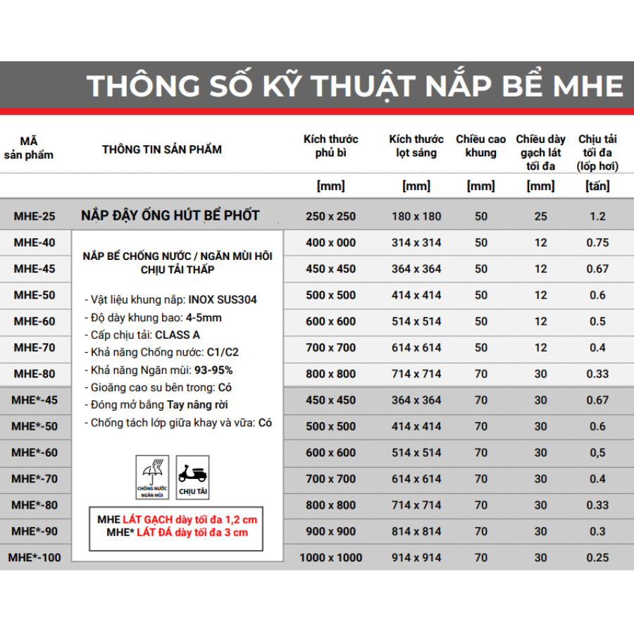 ✨Nắp bể phốt Zavak MHE-25 KT25x25cm, chống nước, chống mùi, lát đá dày 2 cm chịu tải 1 tấn, inox 304