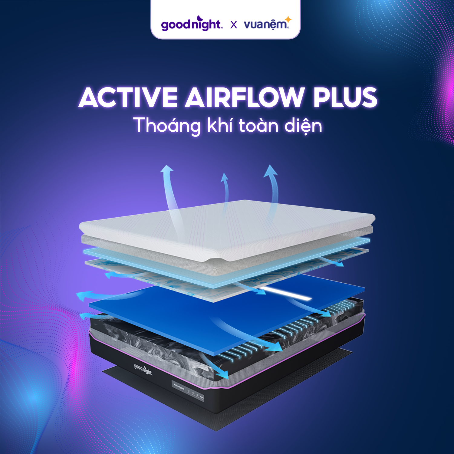 Goodnight Active Hybrid - Nệm công nghệ thế hệ mới, ứng dụng các vật liệu cao cấp và hệ thống kiểm soát nhiệt độ chủ động, giúp tái tạo năng lượng cơ thể trong từng