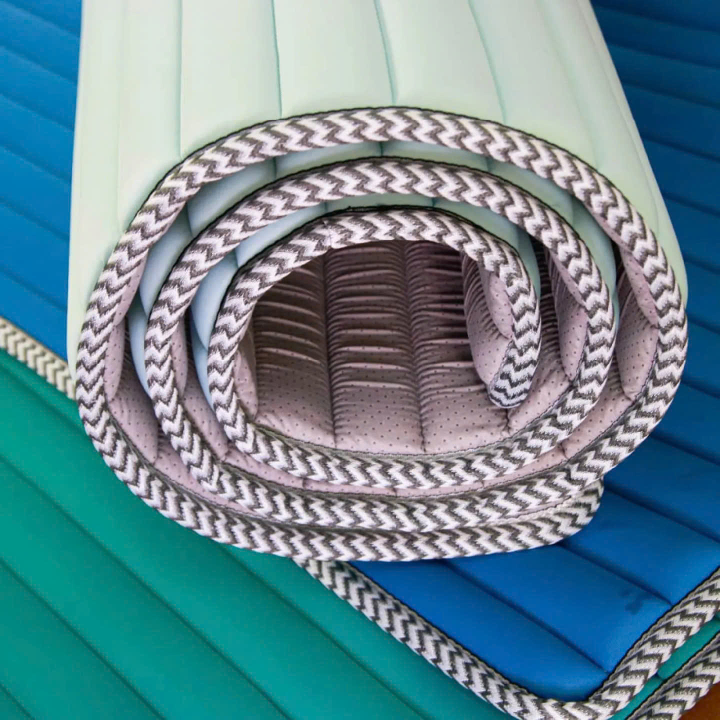 - Mặt dưới là vải chống trượt, giữ nệm vững chắc trên mọi bề mặt.