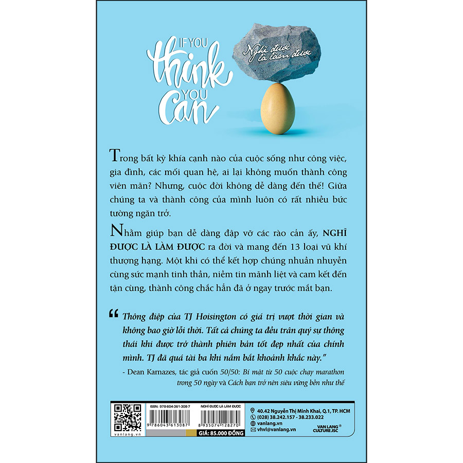 Nhằm giúp bạn dễ dàng đập vỡ các rào cản ấy, NGHĨ ĐƯỢC LÀ LÀM ĐƯỢC ra đời và mang đến 13 loại vũ khí thượng hạng. Một khi có thể kết hợp chúng nhuần nhuyễn cùng sức mạnh tinh thần, niềm tin mãnh liệt và cam kết đến tận cùng, thành công chắc hẳn đã ở ngay trước mắt bạn.