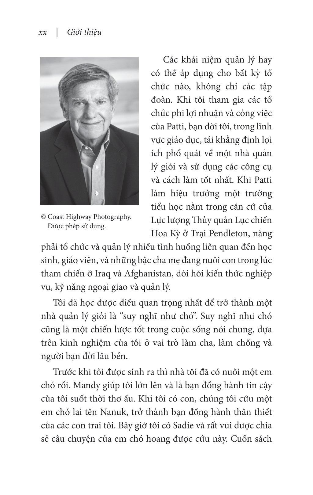 Phá cách mà thấu suốt, Scott và Sadie đưa ra những bài học quan trọng về lòng trung thành, tính kiên trì, để lại dấu ấn của bạn, và luôn đánh hơi siêu đẳng — góc nhìn từ chó và góc nhìn từ người. Scott tiết lộ những gì Sadie và những em chó khác dạy chúng ta về thói quen làm việc thành công và chiến lược tổ chức để đạt được thành công vượt trội trong kinh doanh.