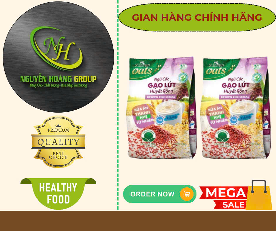Thành Phần: Gạo lứt huyết rồng , Yến Mạch , Ngô , Đậu Xanh , lúa mạch , múa mỳ , canxi Công dụng : Trong ngũ Cốc có đường ISOMALT : Đây là loại dường chiết xuất từ củ cải đường , được viện dinh dưỡng và trung tâm nghiên cứu bệnh đái tháo đường khuyên dùng => Rát tốt cho sức khỏe , phòng bệnh mãn tính đặc biệt là bệnh tiểu đường. Đối Tượng Sử dụng: