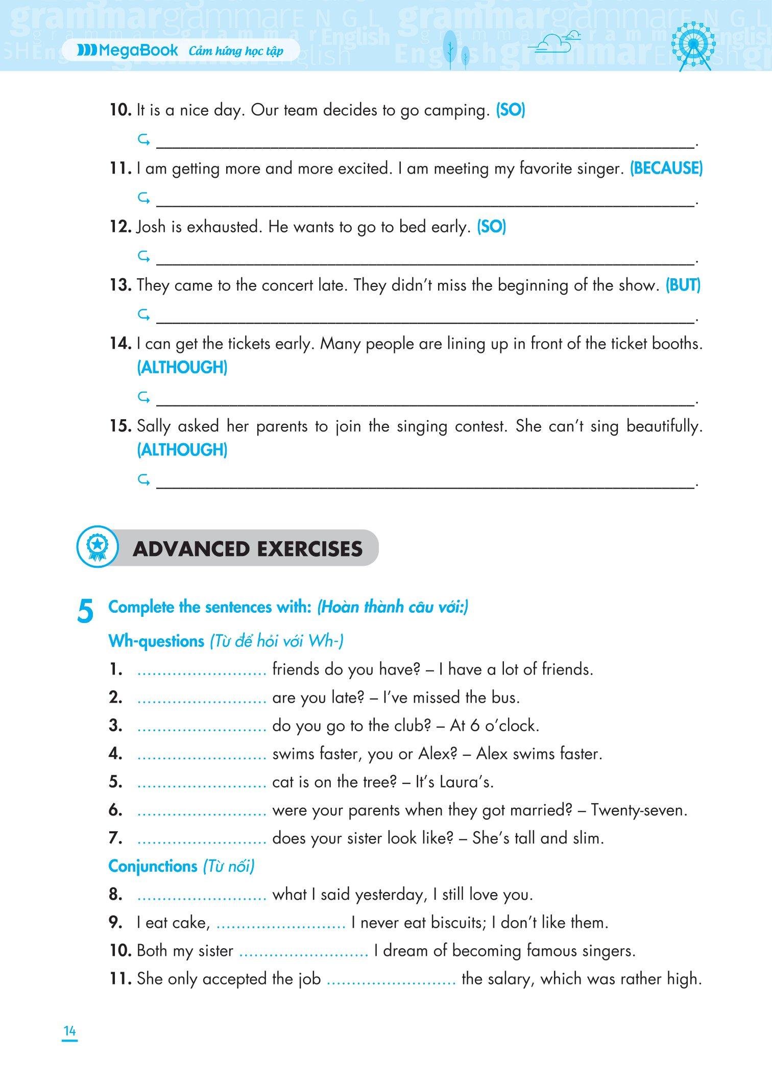 - Cuốn sách cũng cung cấp nhiều mẹo giải hay, dễ dàng vận dụng, dễ nhớ, sẽ giúp học sinh làm bài nhanh hơn và đạt điểm cao hơn, từ đó các em sẽ tăng thêm niềm hứng thú với môn học này. Megabook hy vọng rằng bộ sách Ngữ Pháp Tiếng Anh Nâng Cao sẽ luôn là người bạn đồng hành của các em học sinh và là sự tin tưởng của các thầy cô giáo và các vị phụ huynh.