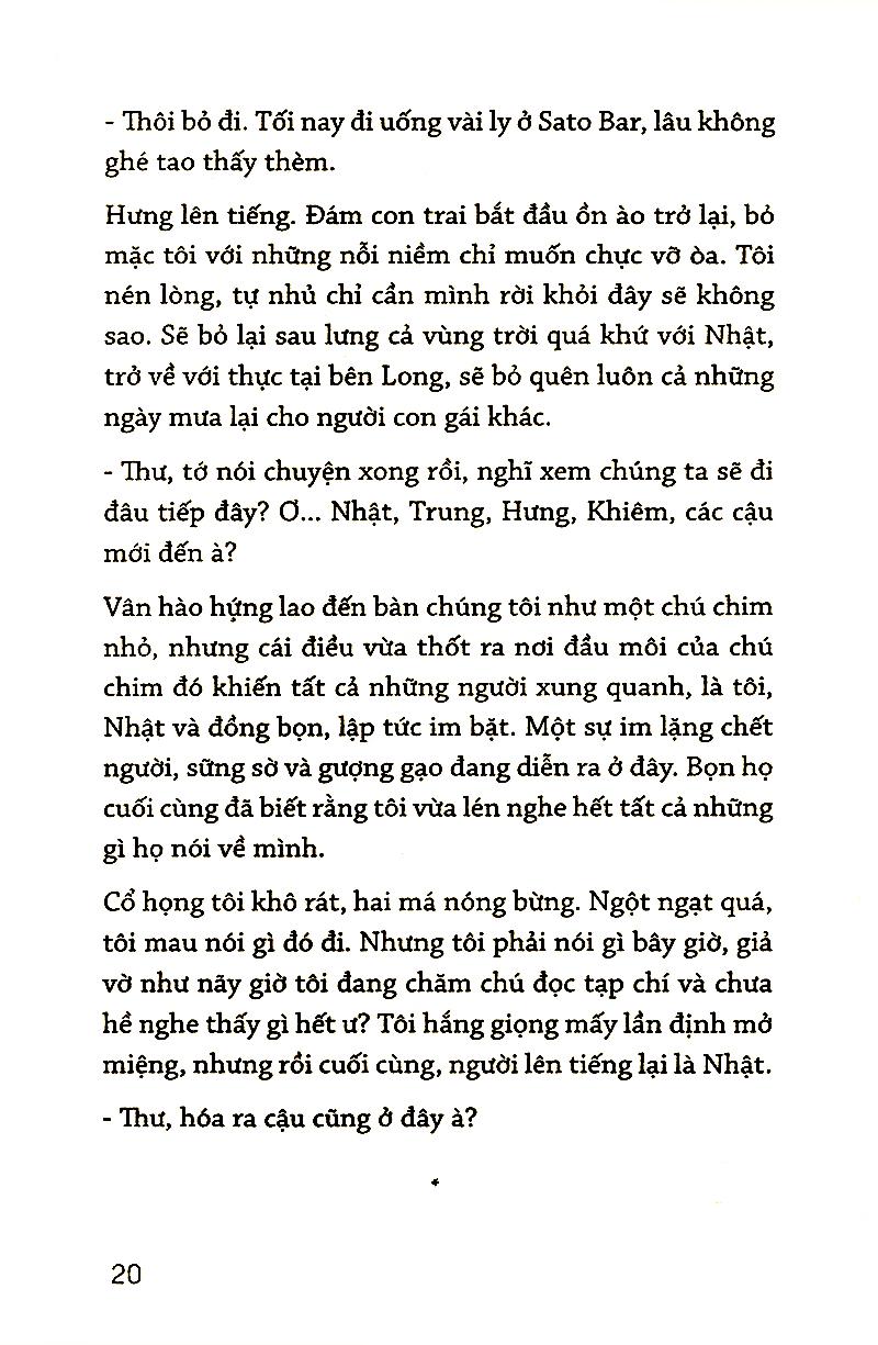 Một số trích đoạn: (1) – Nhịp tim của con chị đấy, chị nghe thấy chưa ạ? Lời nữ hộ sinh cắt ngang dòng suy nghĩ của Hằng. Hằng khẽ gật đầu. Ừ, thiên thần bé