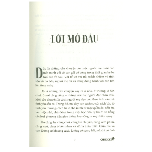 Đó là những câu chuyện xảy ra ở nhà, ở trường, ở sân chơi, ở nơi công cộng – những nơi hai người đặt chân đến. Mỗi câu chuyện là cách người mẹ dạy con theo tình cảm và tình yêu sẵn có. Trong đó, mẹ dạy con cách cư xử, cách bày tỏ tình yêu thương, cách tự lo cho mình từ mặc quần áo, nấu ăn, làm việc nhà, chủ động trong việc học đến tự tin đi xa bằng các loại phương tiện giao thông hay sống xa mẹ nhiều ngày.